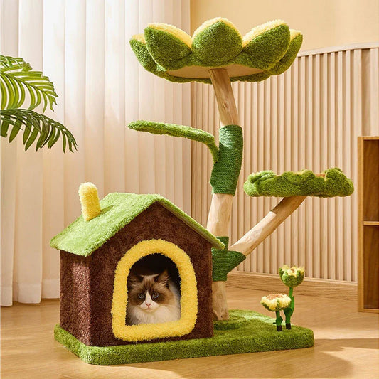 This sunflower cat tree is the cutest addition to my home, and my cat absolutely loves it! The design is so charming, with sunflower-shaped perches and a cozy green color that fits well with my decor. Itโs the perfect height for my cat to climb, lounge, and scratch, keeping her entertained and giving her a great view from the top perch.