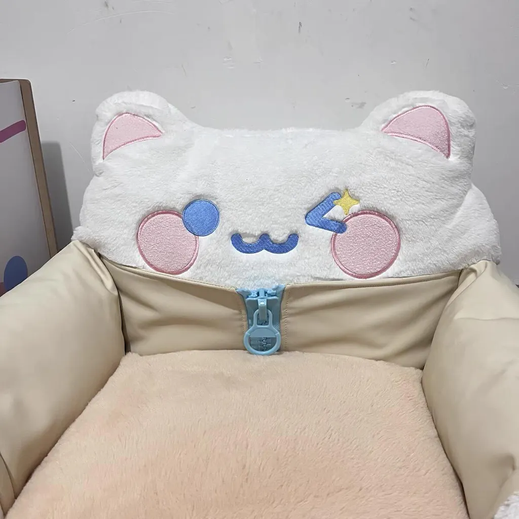 The Cookie Chef Cat Couch Bed features a charming 3D cat head design that’s both cute and expressive, adding a playful touch to your home decor. Its surrounding border offers a secure and cozy embrace, ensuring your cat feels safe and relaxed. -