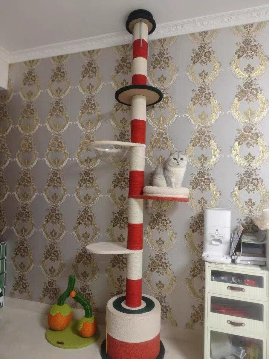 Sturdy Design: The Lighthouse Floor to Ceiling Cat Climbing Tree features a solid 12cm diameter sisal scratching post, providing stability and durability for your feline friends.