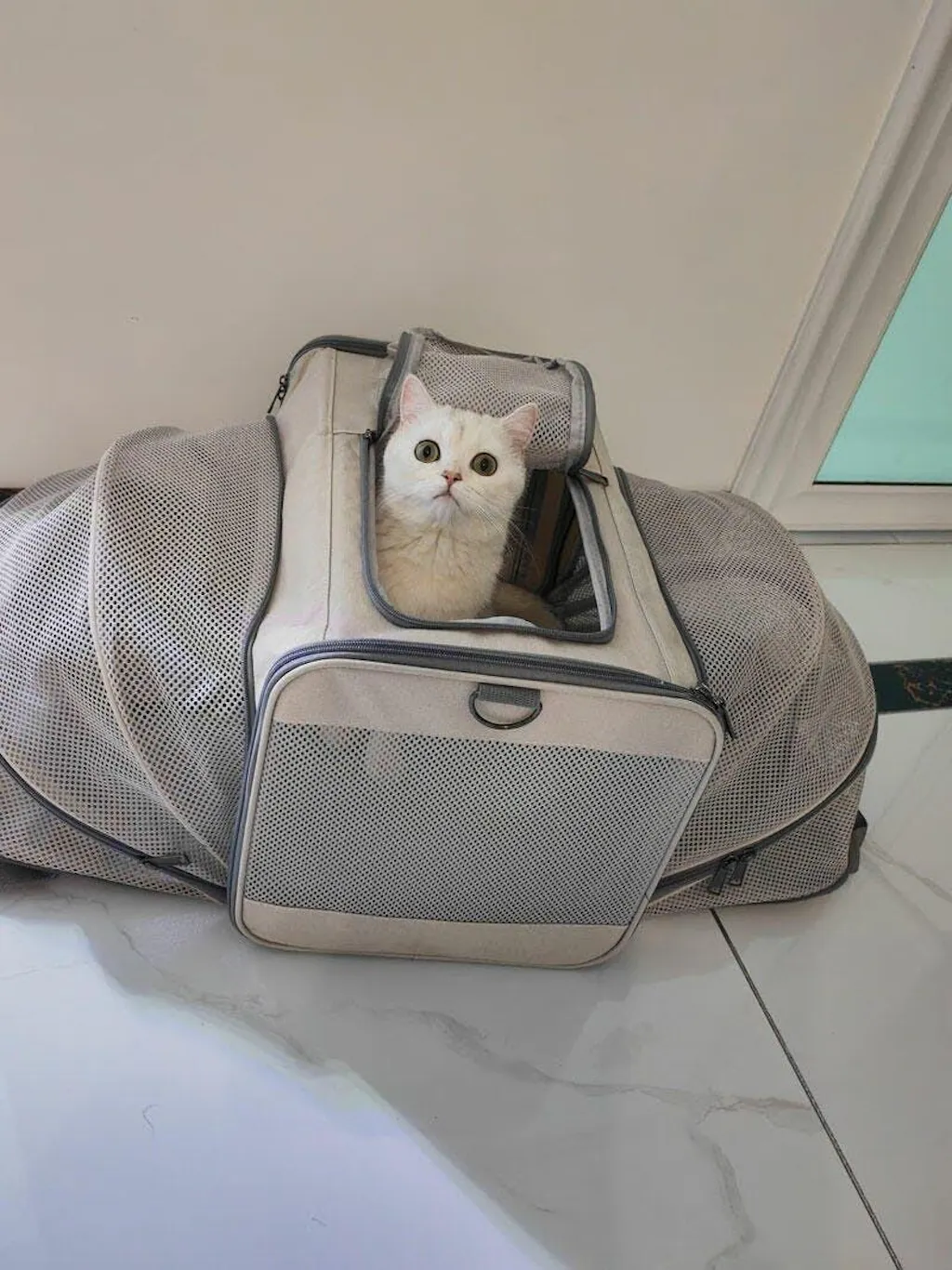 - Versatile Design: Our Cat Carrier on Wheels Tote features an expandable design, allowing for ample space to keep your pet comfortable during travel.