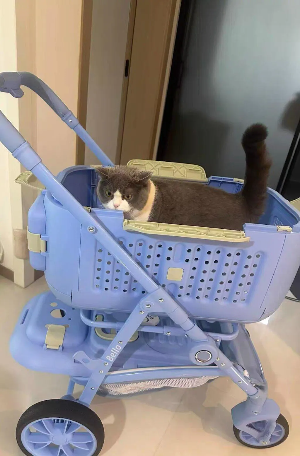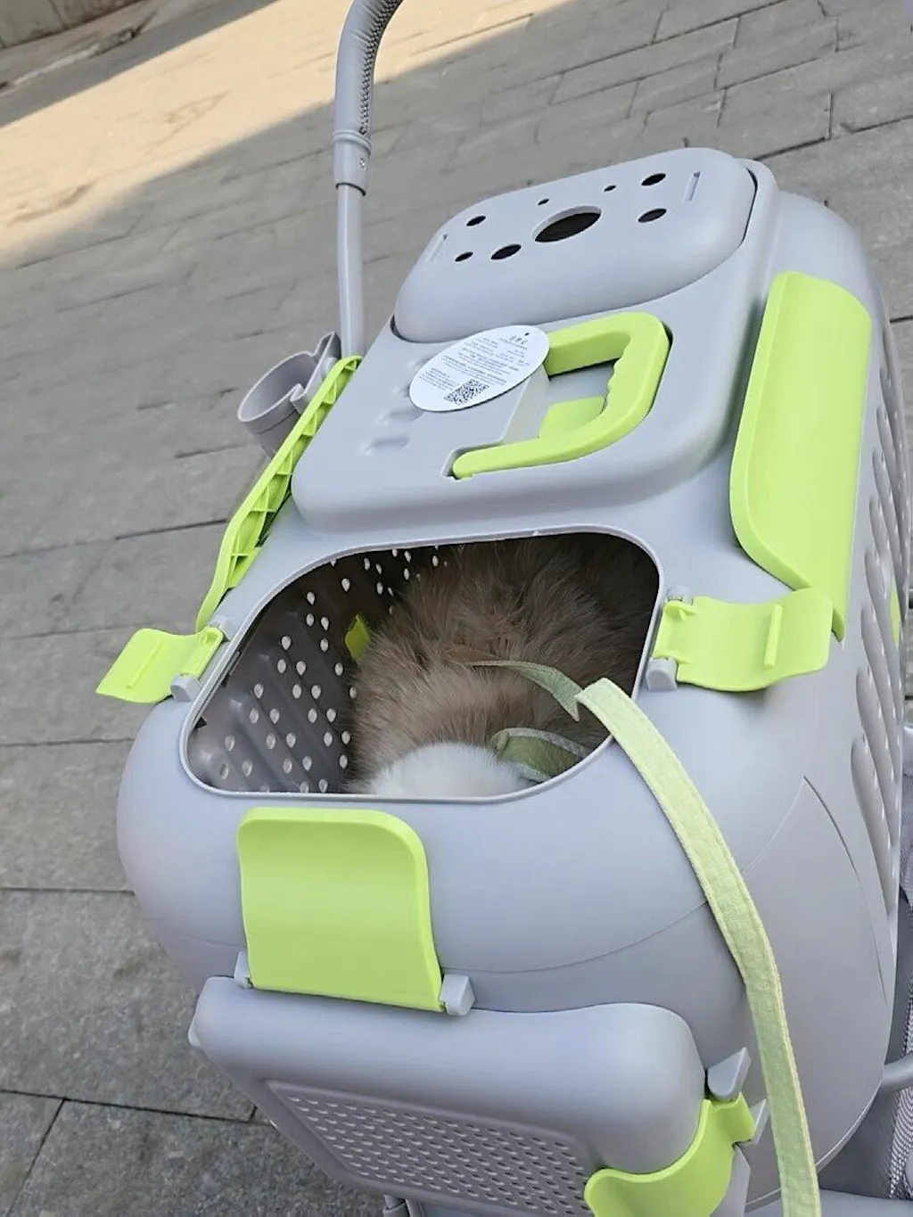 - Smooth Ride: Equipped with shock-absorbing PU wheels and precision bearings, this cat carrier stroller ensures a smooth, comfortable experience, filtering out bumps during your walks.