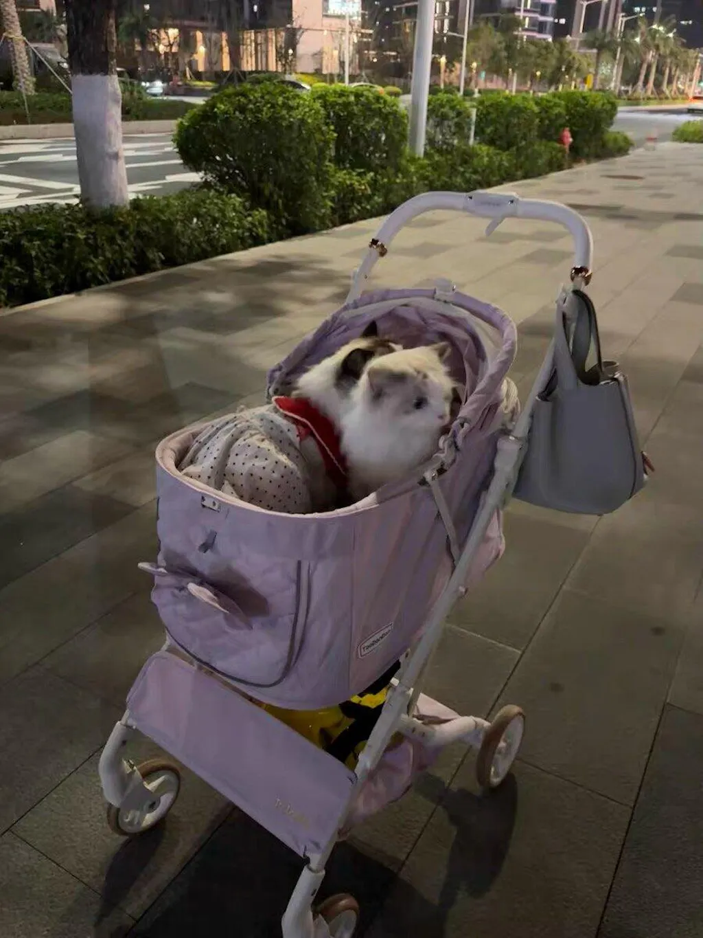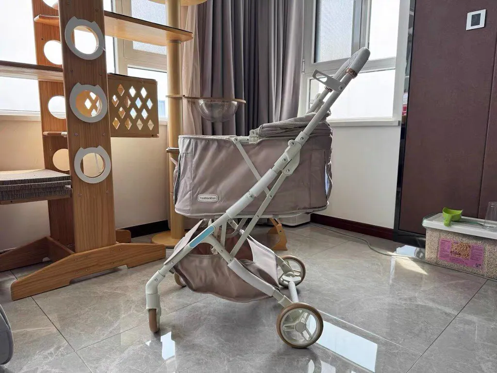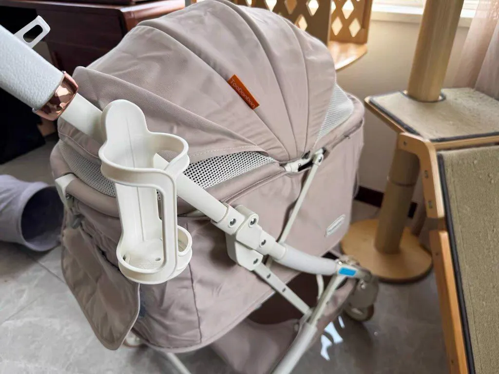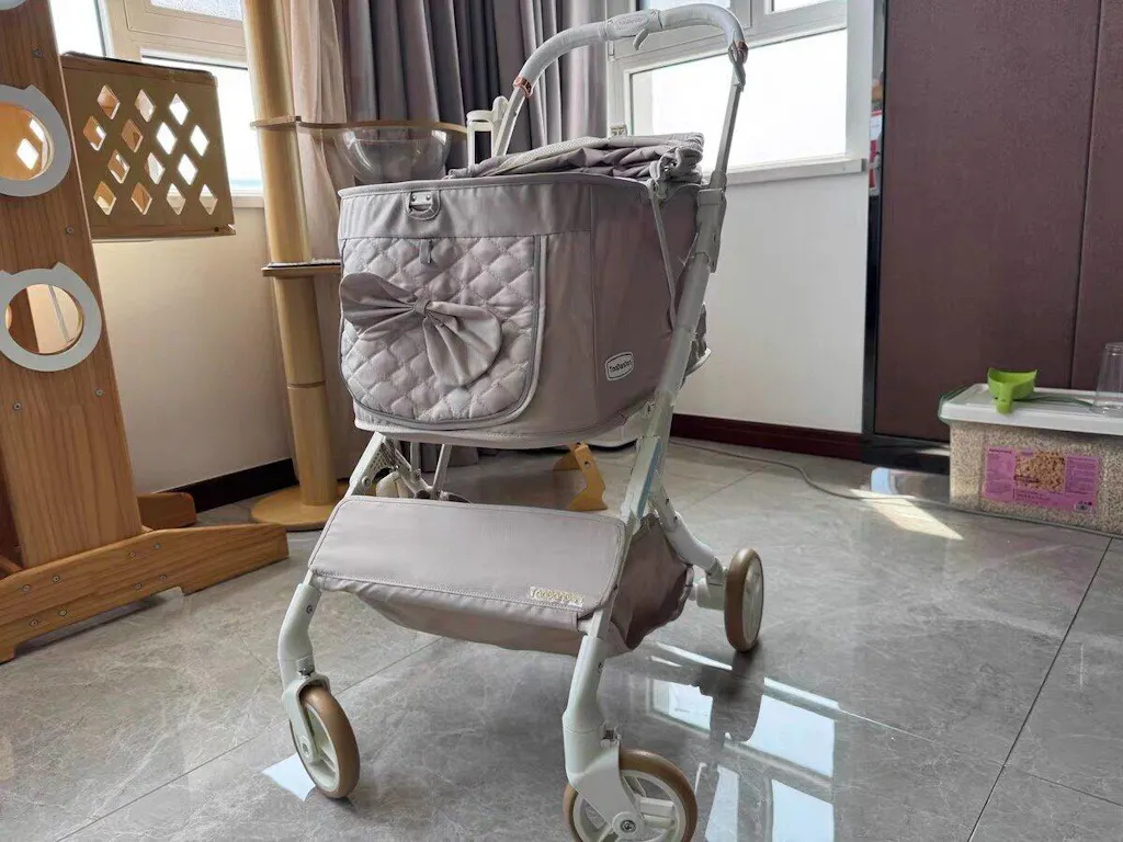 - All-in-One Stroller: This elegant cat stroller features a sleek, non-detachable design, offering ultimate convenience for pet owners on the go.