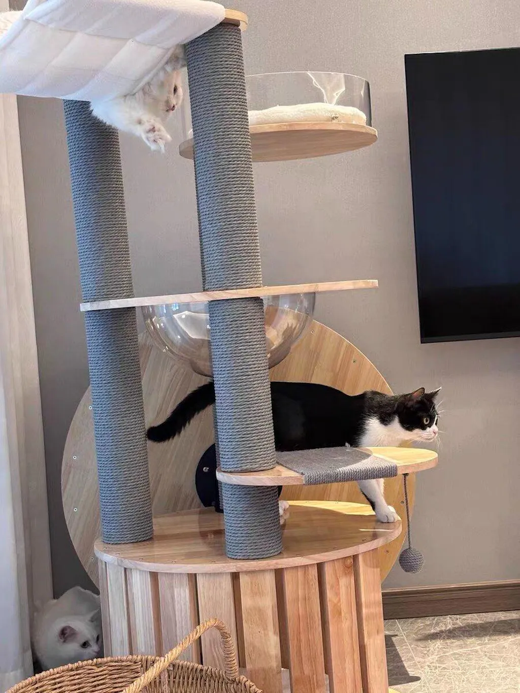 Sturdy Design: Featuring a thickened 10cm diameter cat scratching post, providing solid support for your cat climbing tree, enhancing stability and safety.