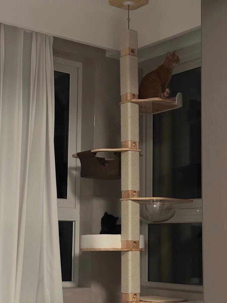 Space-Saving Design: The Solid Wood Floor to Ceiling Cat Climbing Tree occupies just 0.16㎡, making it perfect for any home without compromising on floor space.