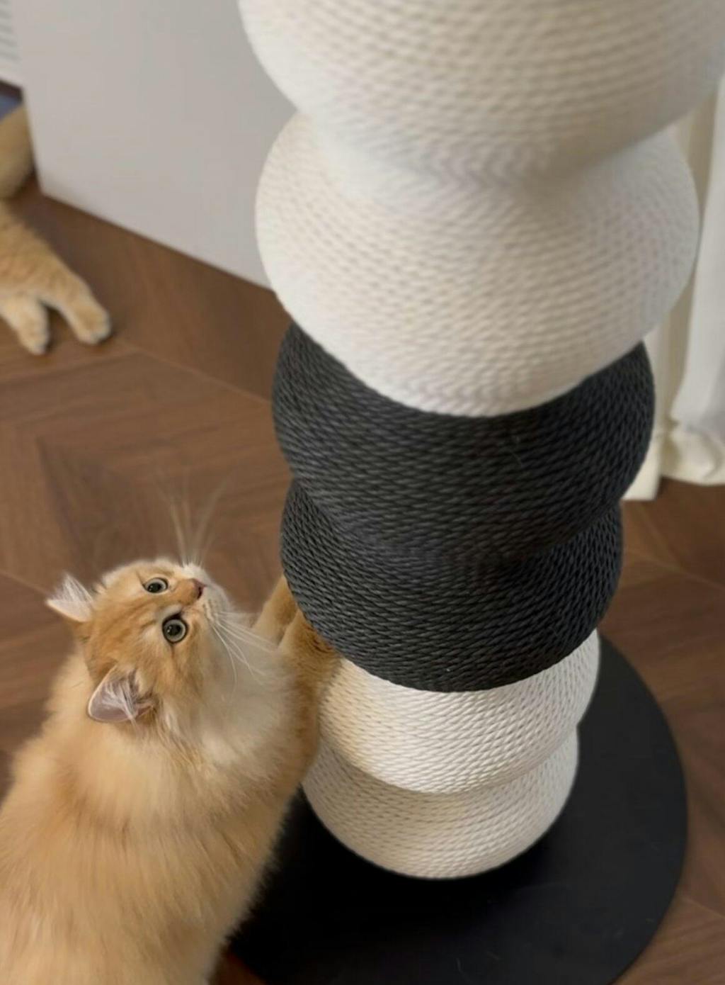 Durable & Comfortable Material: Made from wear-resistant paper rattan, this scratching post is designed to last without shedding, offering a satisfying scratching experience for your cat.