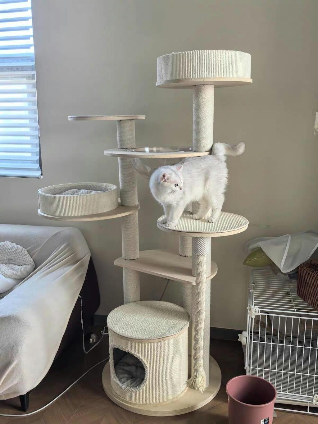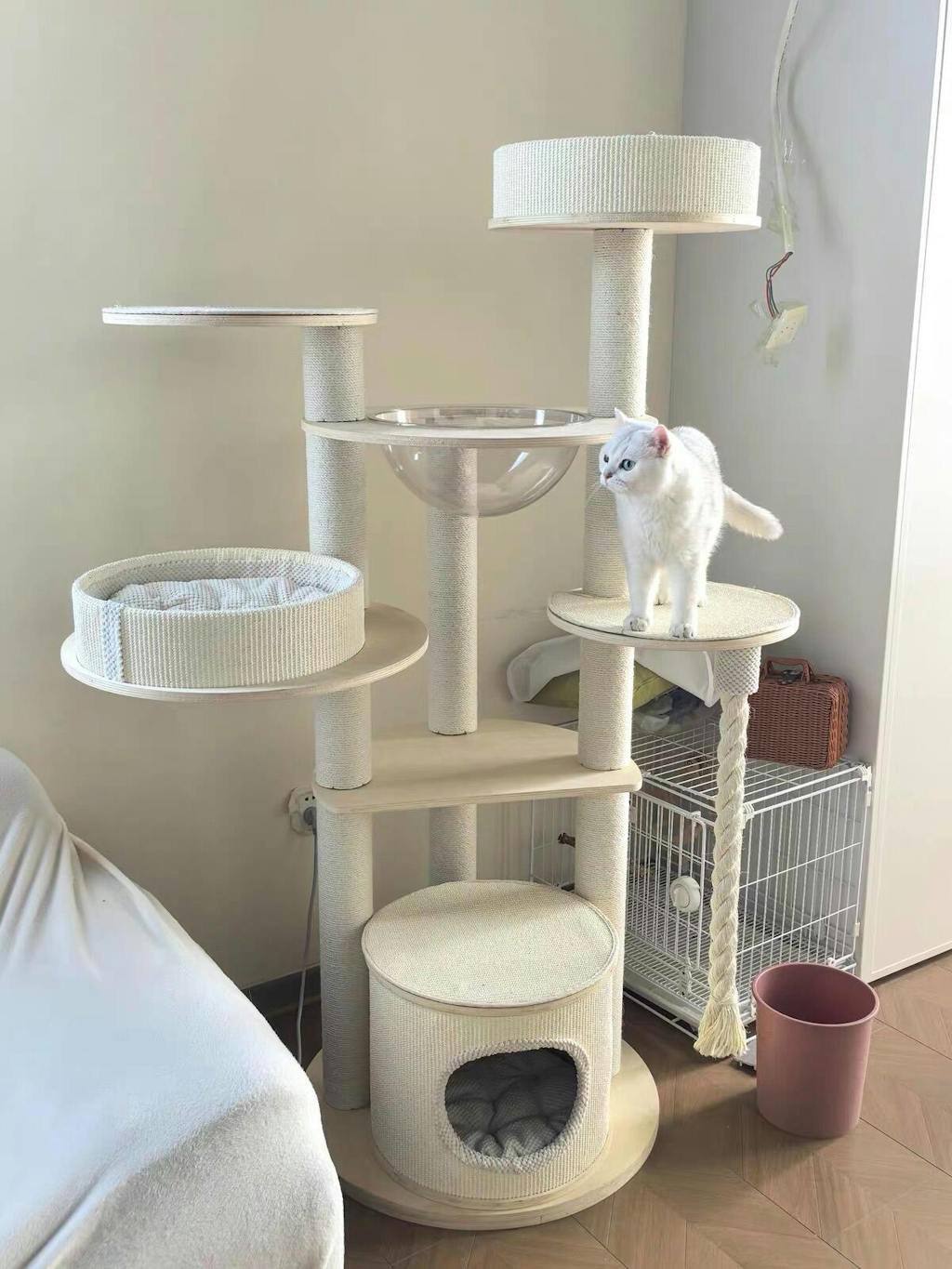 - Spacious Design: Our Large Solid Wood Cat Climbing Tree Tower is perfect for multi-cat households, providing ample space for play while occupying minimal floor area.