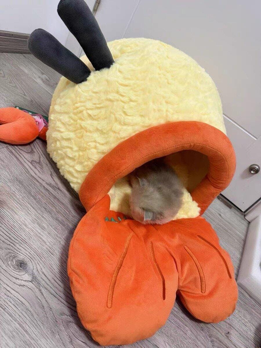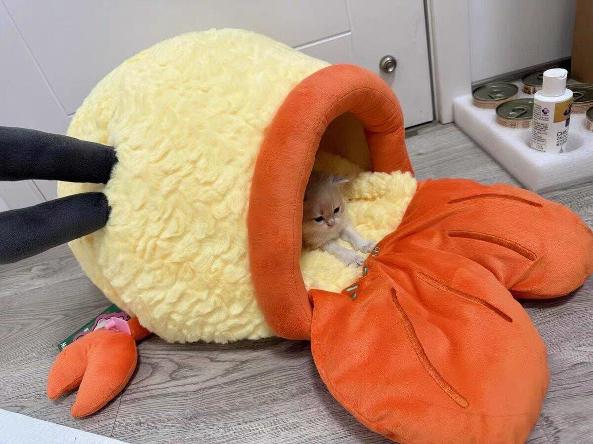- Unique Tempura Design: Elevate your pet's lounging experience with our Crispy Tempura Cat Cave Bed, featuring a playful, eye-catching design that adds a fun touch to any home.