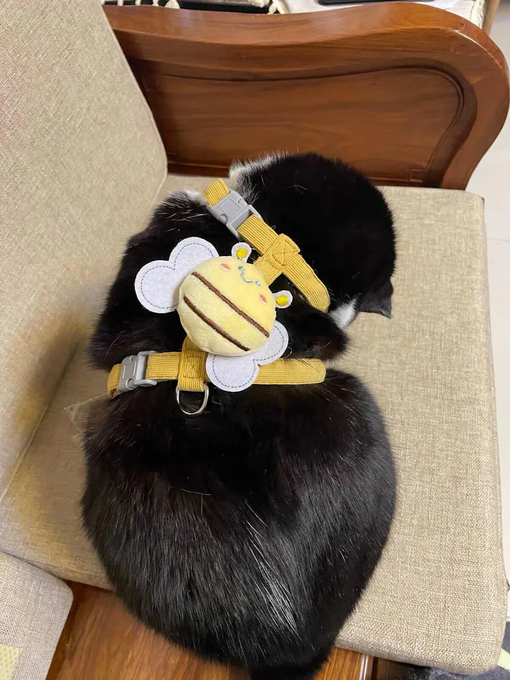 - The Cute Bee Cat Harness, is a must-have for pet owners who want both style and functionality! Made with a combination of nylon, fabric, and alloy, this harness is durable and comfortable for your furry friend.