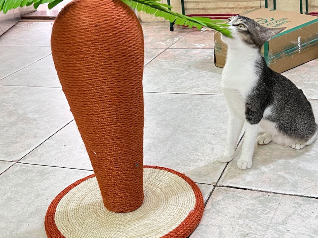 - Made with a thick cardboard tube wrapped in natural sisal and a stable chipboard base, it ensures stability and safety.