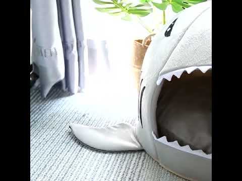 • This pet bed features a unique cartoon shark design, complete with gray coloring, eyes, tail, and teeth details, adding a fun touch to your pet's space.