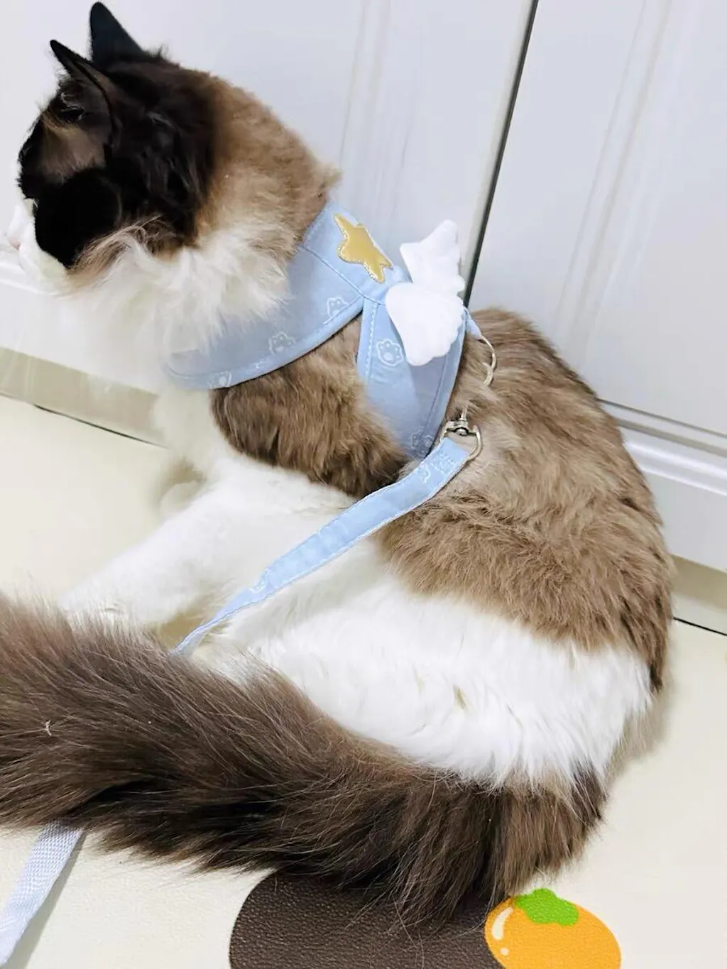 - Adjustable and easy to use: Both the harness wings and leash set are adjustable and easy to put on and take off, making it convenient for both you and your cat.