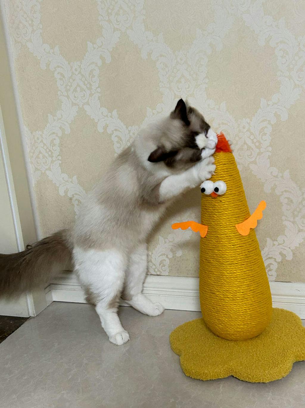 - Transform playtime with our adorable Chick-Shaped Cat Scratching Post! This mini playground for your feline offers a perfect blend of functionality and charm.