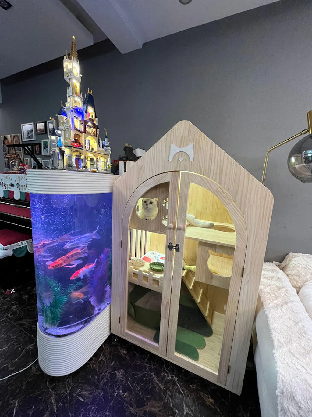 - Versatile Use: Multi-functional indoor cat castle that serves as a cat bed, cat house, cat cabinet, and more - perfect for creating a dedicated space for your furry friend.