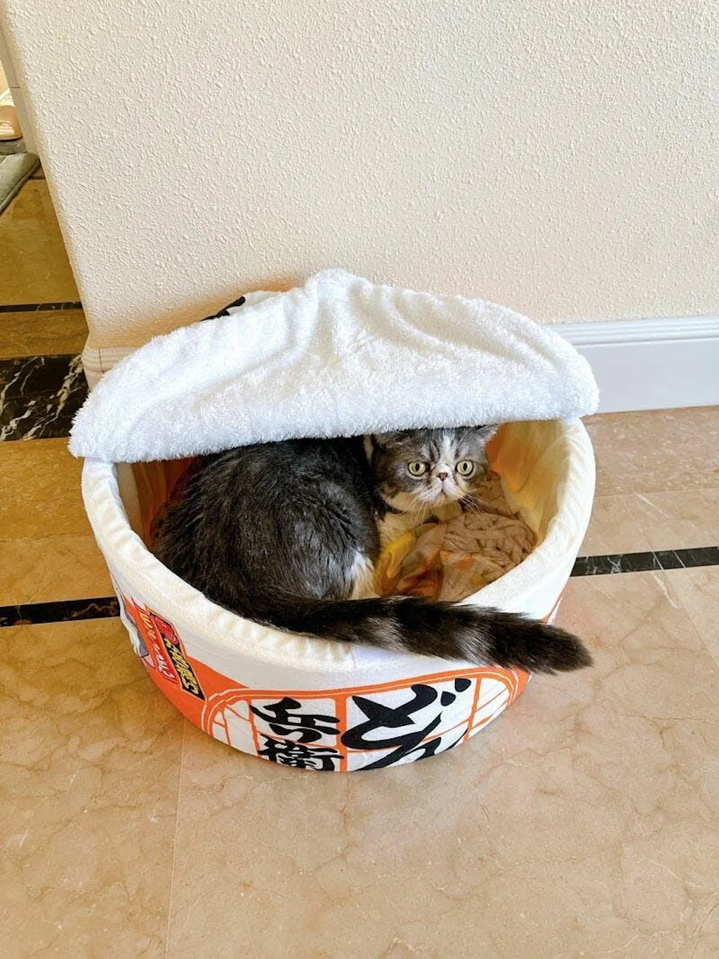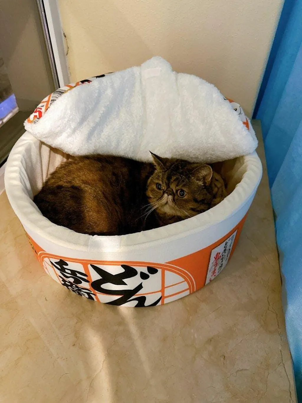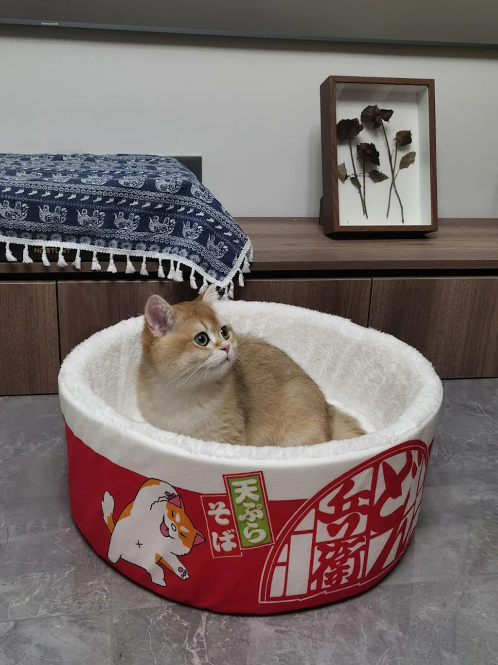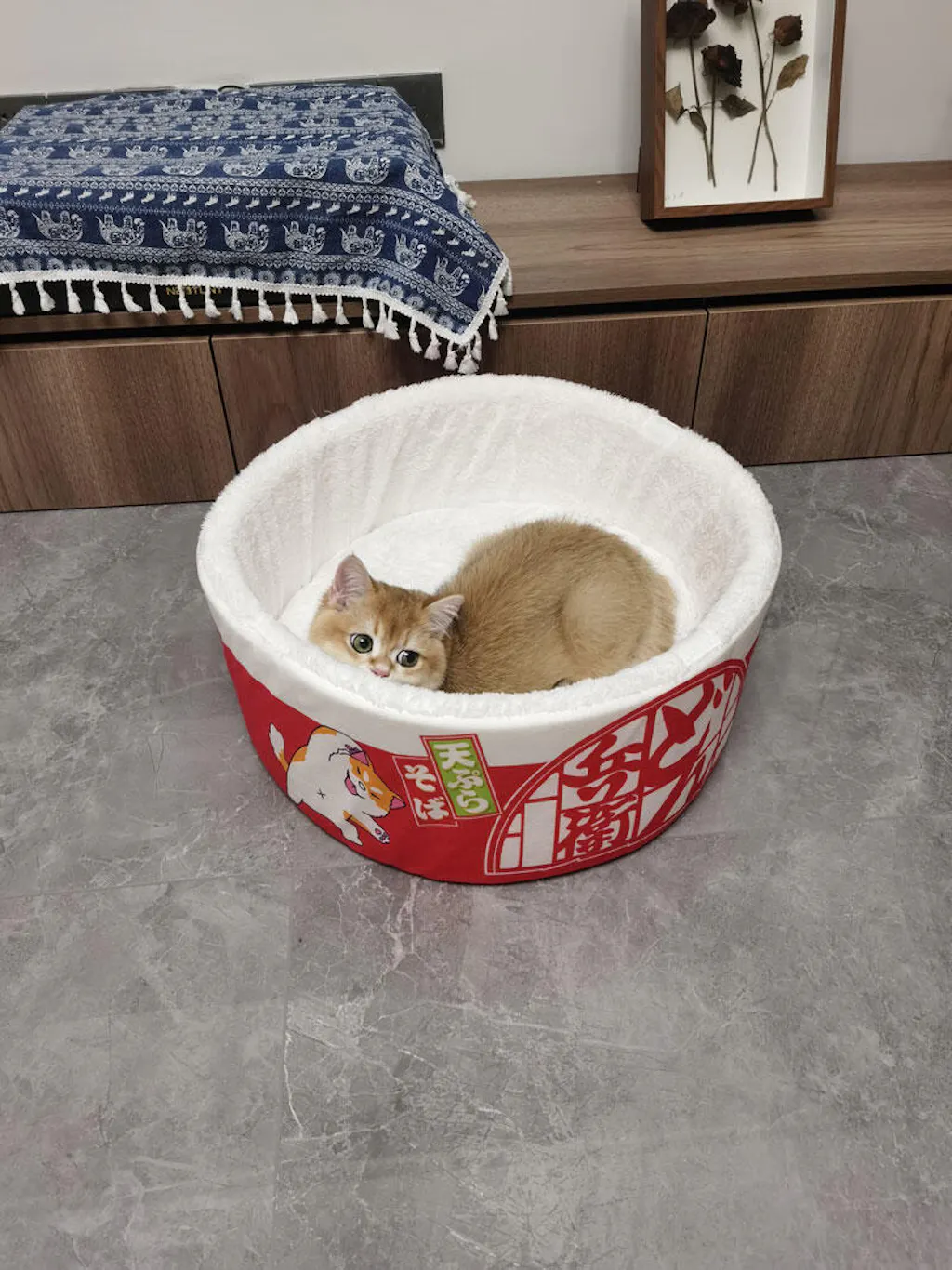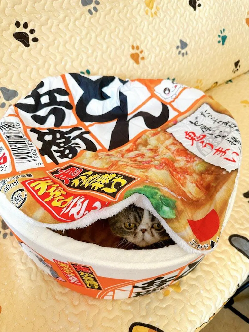 Charming and creative instant noodle-shaped cat cave makes pets feel more secure and keeps them warm even on cold days, bringing you closer to your pets.