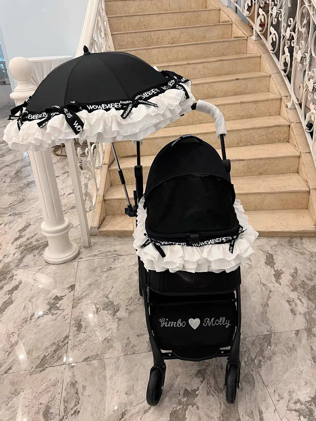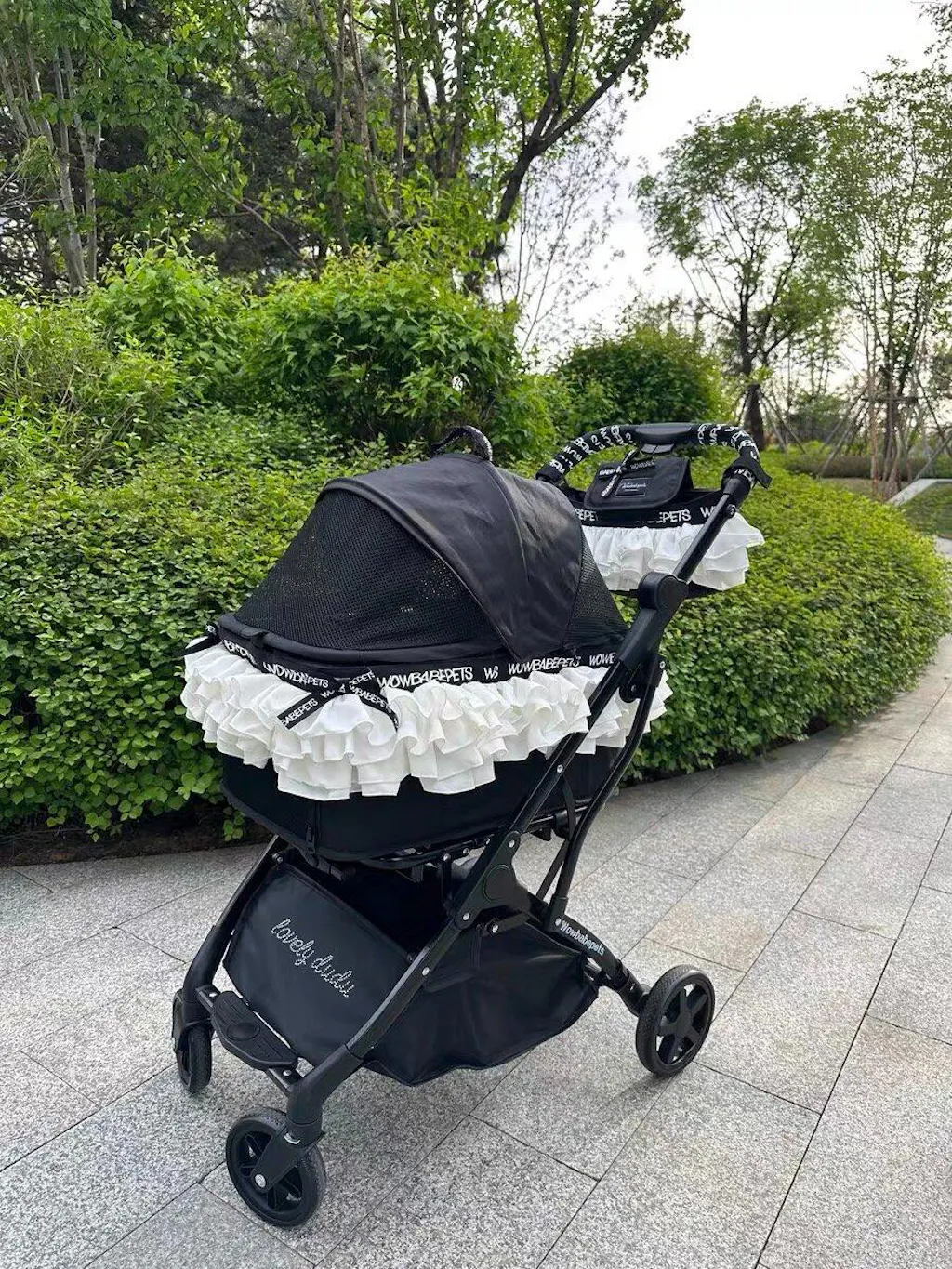 - This lightweight, foldable pet stroller offers maximum comfort and smooth maneuverability with sturdy wheels. Its luxurious lace design adds elegance, perfect for style-conscious pet owners.