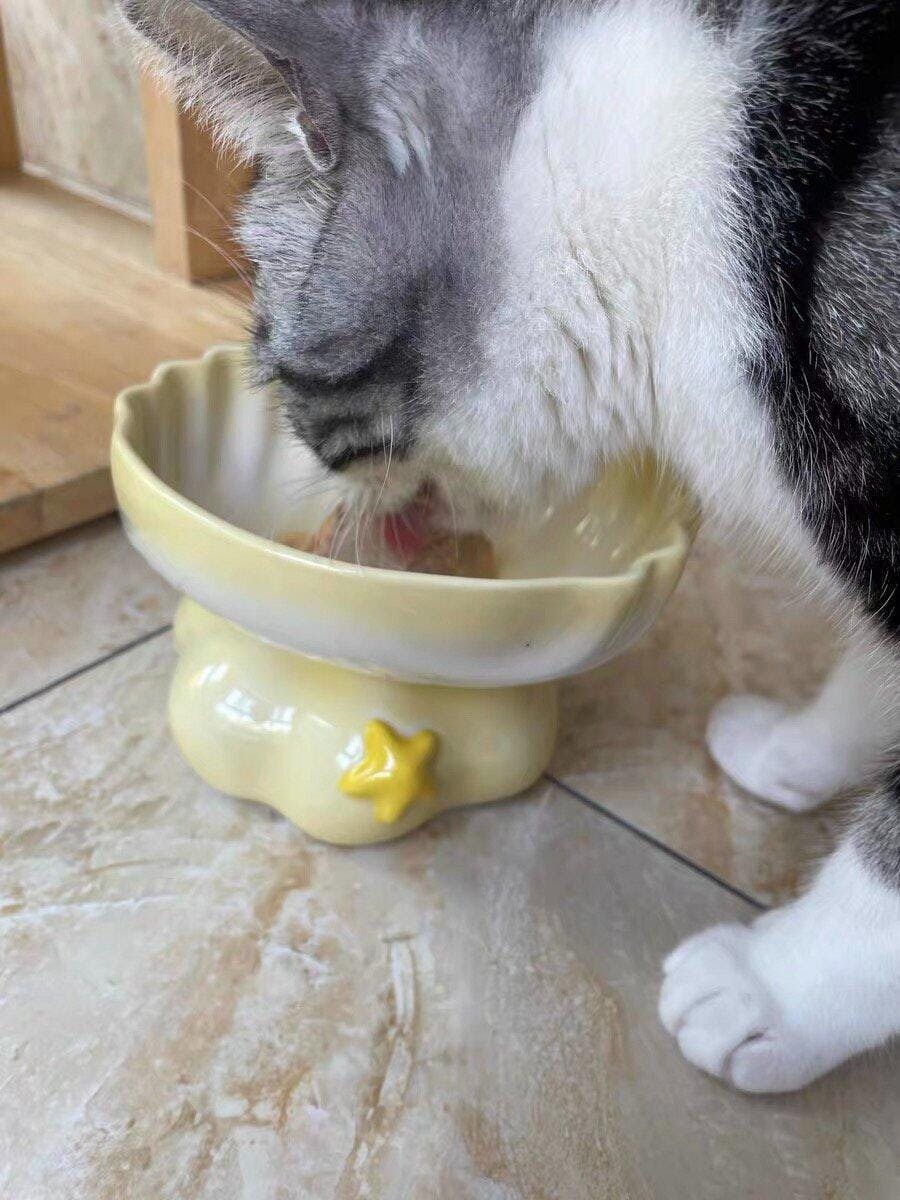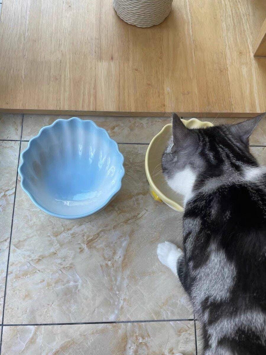 Shell Cat Food Water Bowl 2 Color Ceramic Elevated Bowl