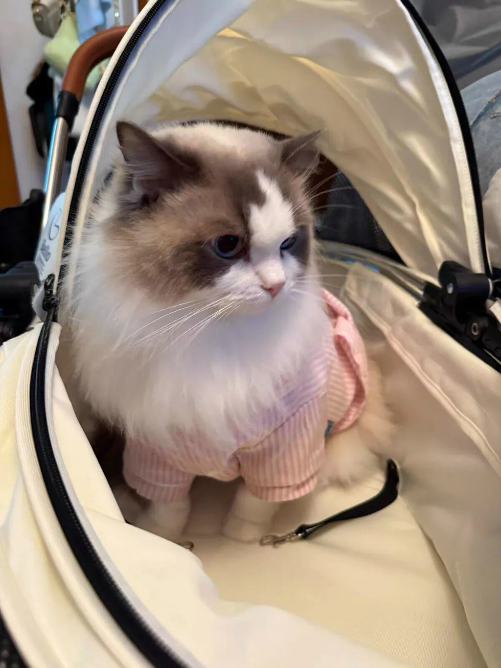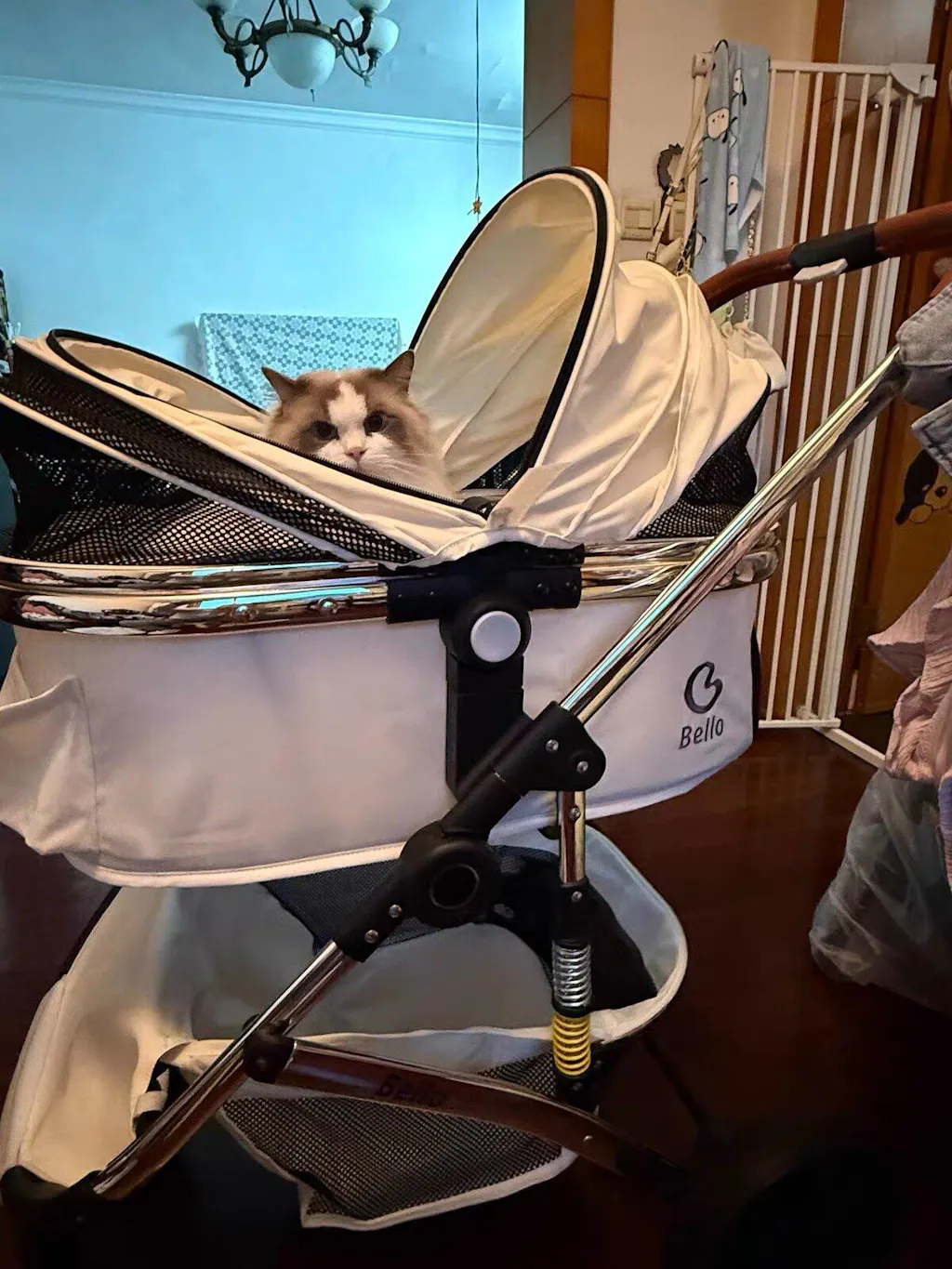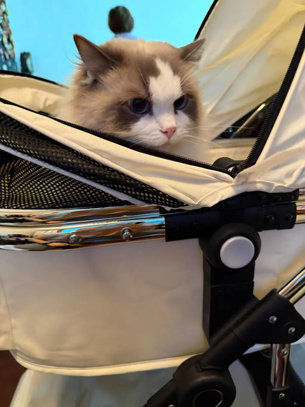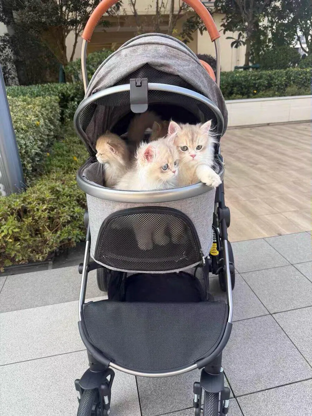 • Durable Aluminum Alloy Frame: The cat stroller is made of high-quality aluminum alloy, providing strength and stability while remaining lightweight for easy maneuvering.