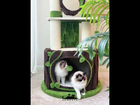- Nature-Inspired Design: The Verdant Wilderness Cat Tree Tower brings a touch of the outdoors inside with lush greenery, creating a unique, natural playground for your feline friends. This eye-catching, tall cat tree adds charm to any room.