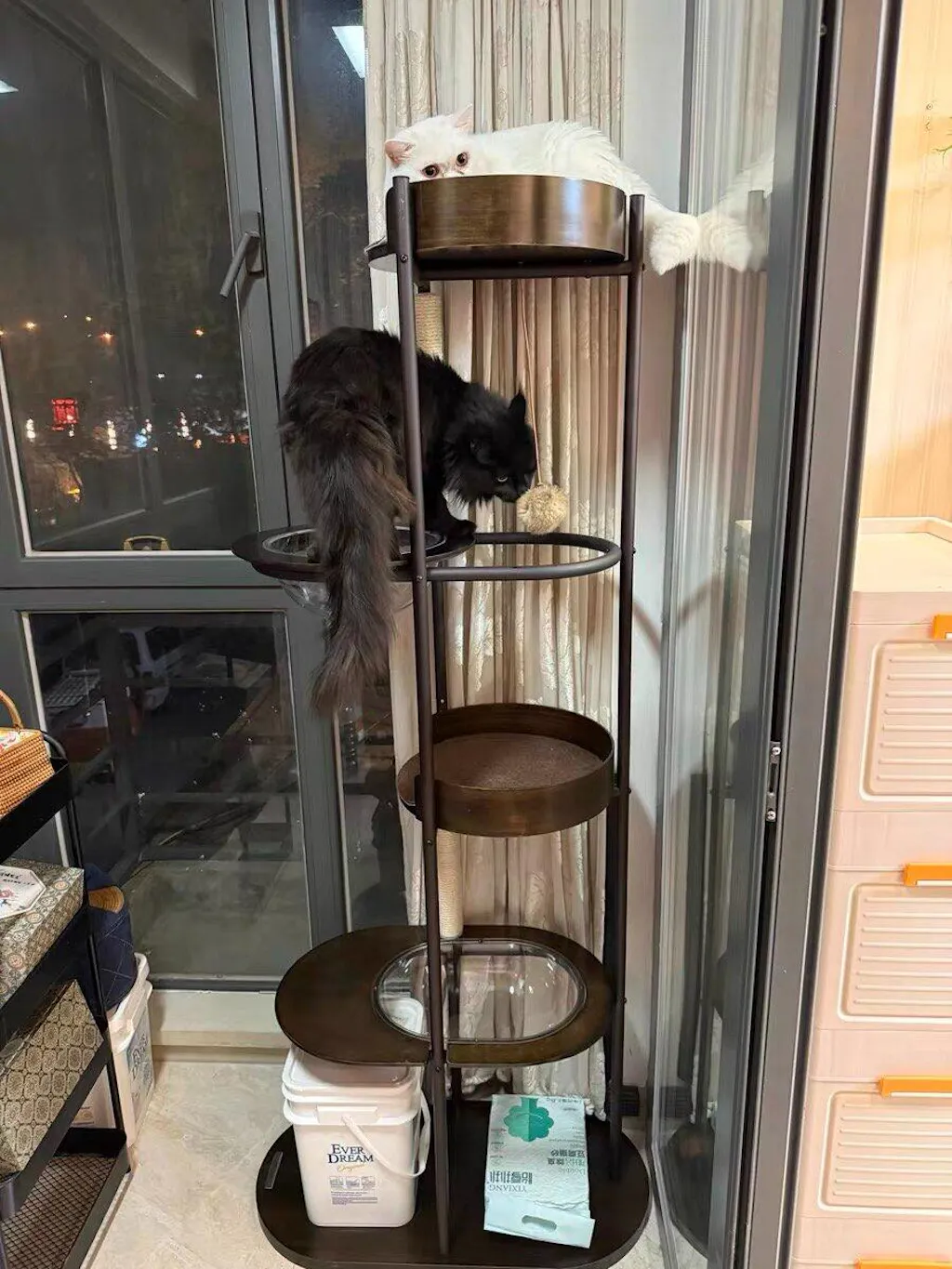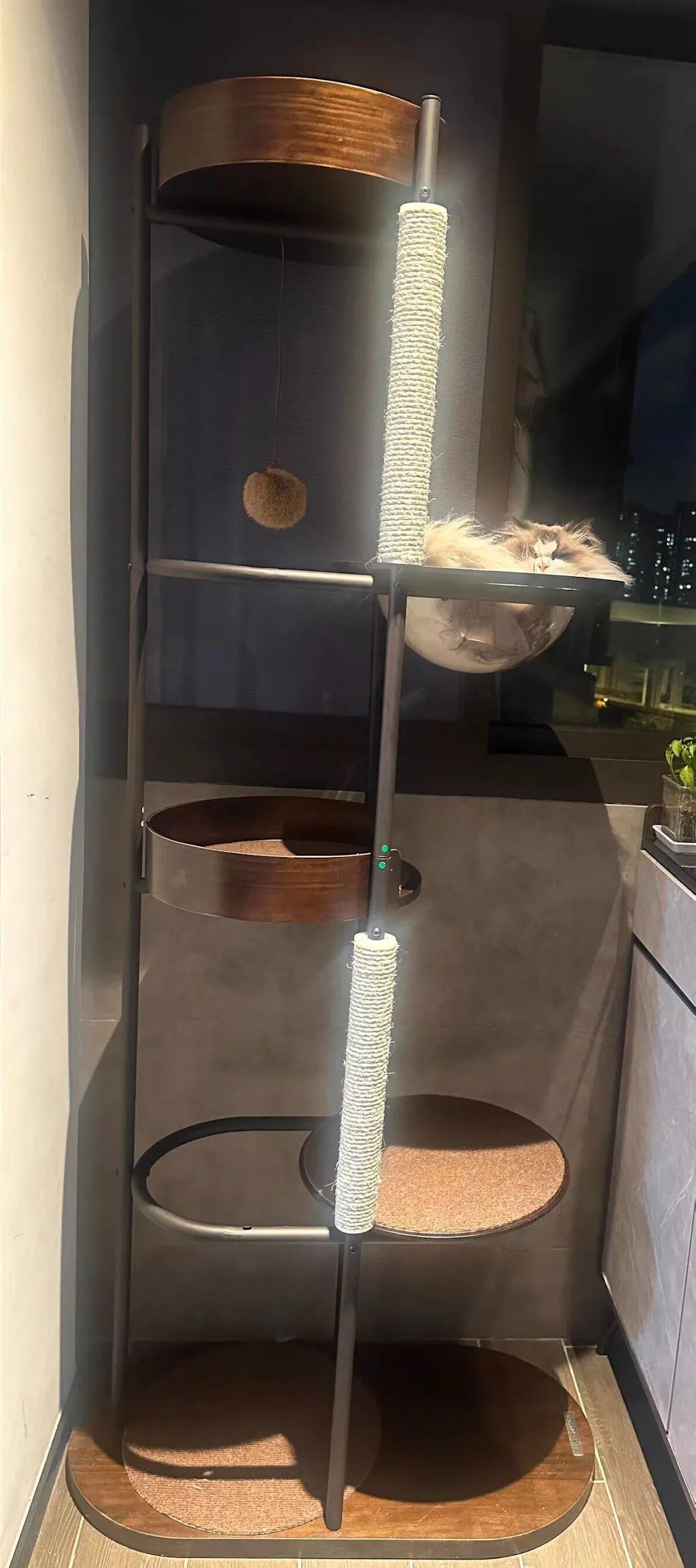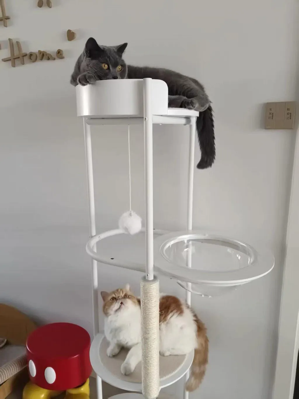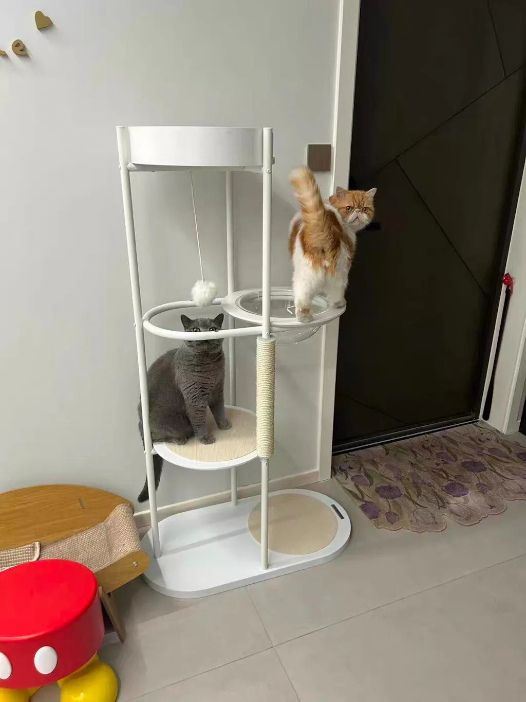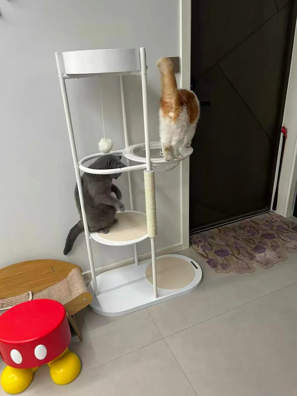 Premium Materials: Constructed with New Zealand pine wood platforms, baked iron tube supports, and a sturdy solid wood base, this cat climbing frame offers exceptional stability and durability for your playful pets.
