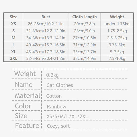Mrduanju Rainbow Cat Vest Warm Pet Clothes