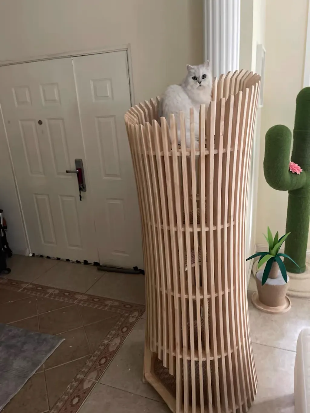 - Crafted from high-quality solid wood, serving as both a cat playground and a stylish home decor piece.