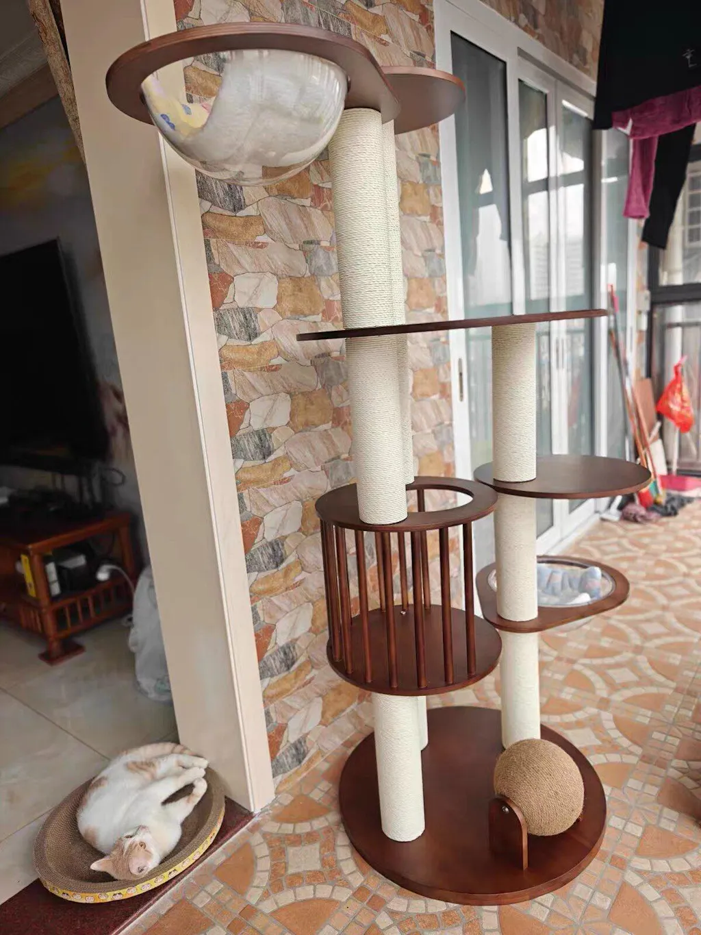 - Sturdy Design: This Wooden Cat Tree is crafted to support multiple cats, providing a stable environment for playful adventures without toppling over.