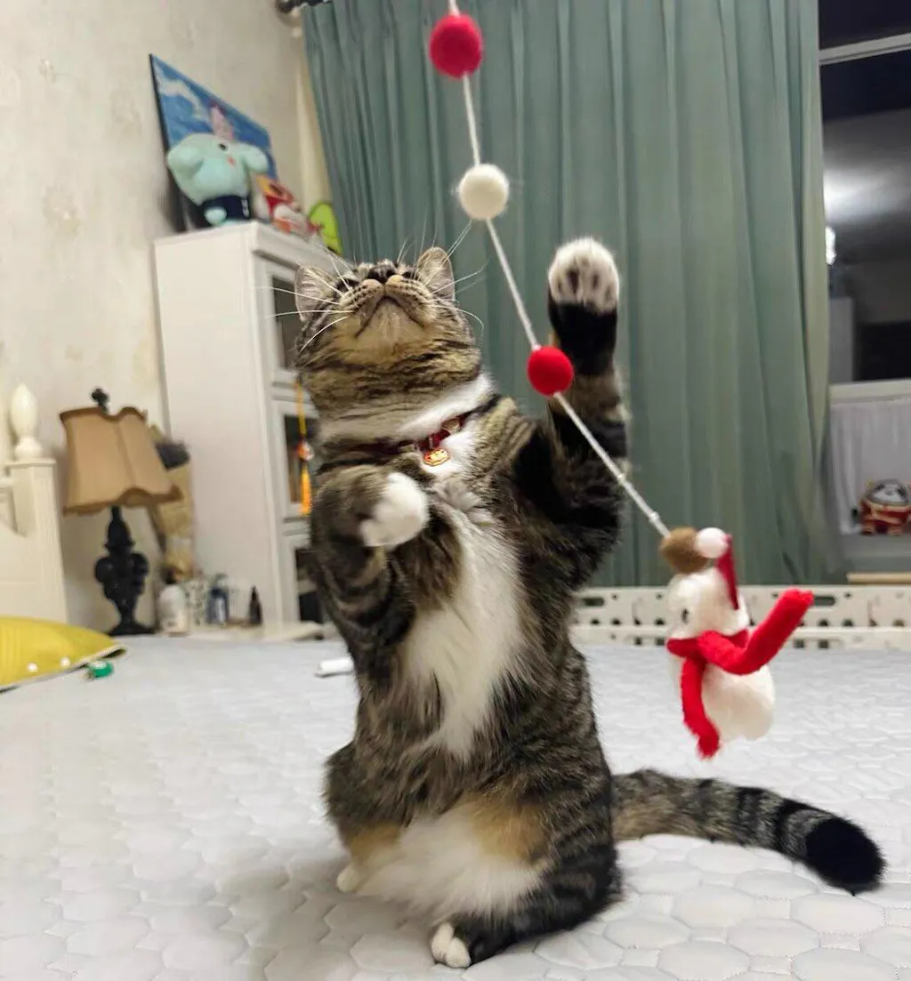 - Festive Fun: Our Christmas Feather Teaser Wand adds a delightful holiday spirit to your cat's playtime with charming designs featuring Christmas trees and snowmen.