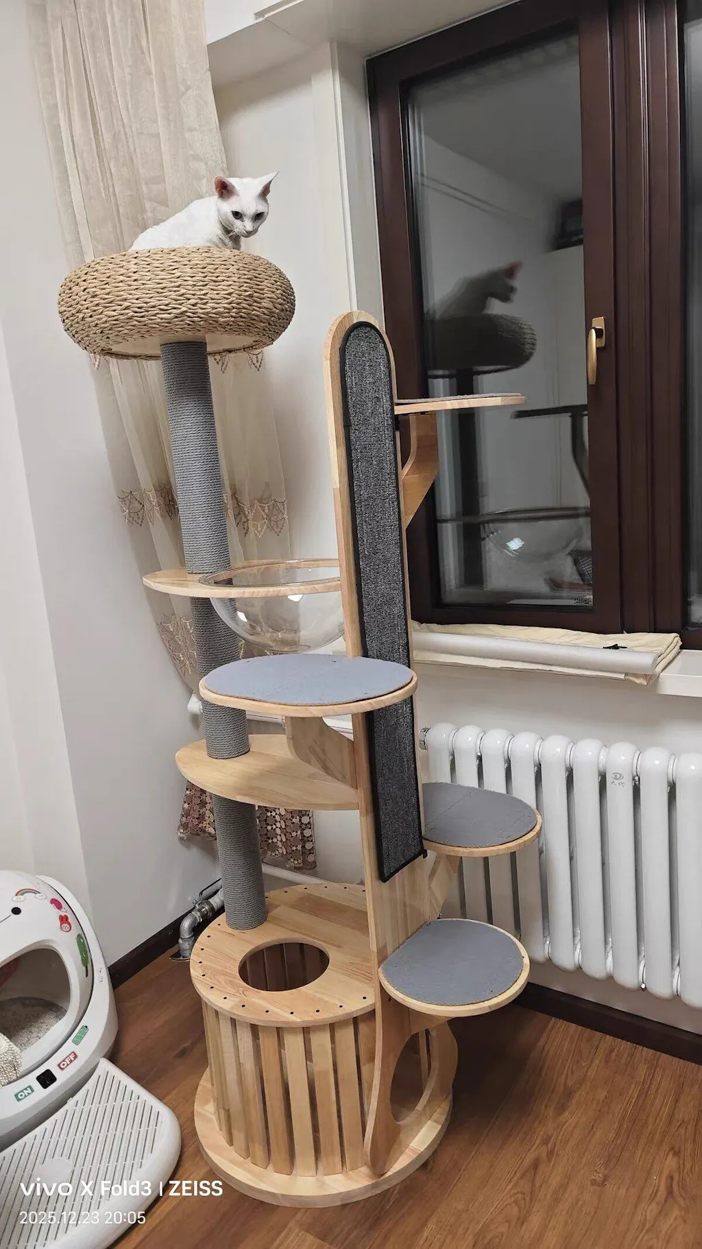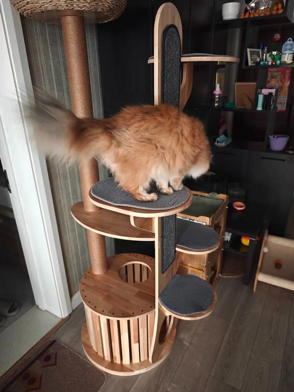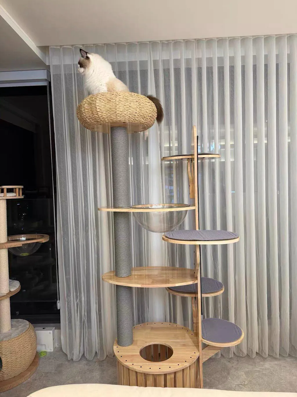 Premium Materials: Constructed from high-quality, eco-friendly rubber wood, this cat tree is UV waterproof, easy to clean, and resistant to cat hair, ensuring a stylish addition to your home.