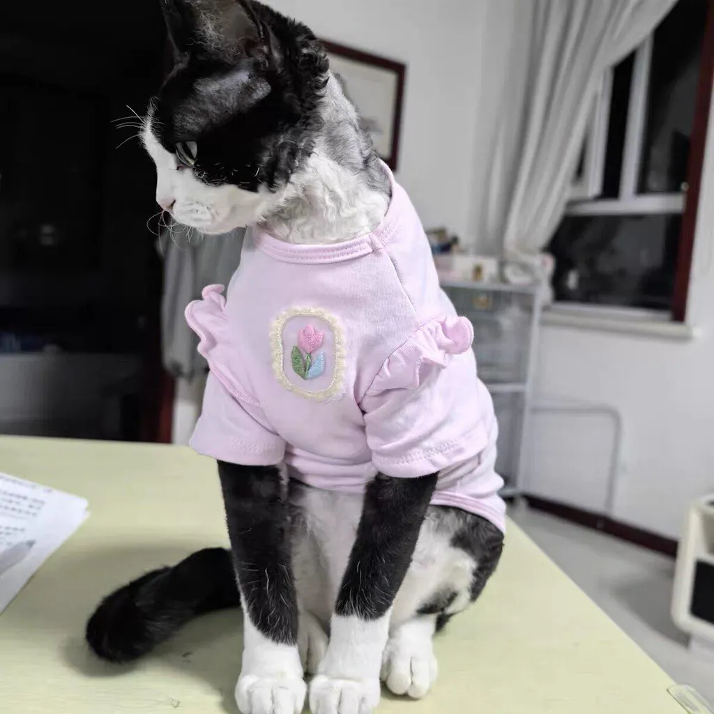 - Chic Floral Design: The Floral Soft Outfit for Sphynx features a beautiful flower embroidery, making your hairless cat look adorable and fashionable.