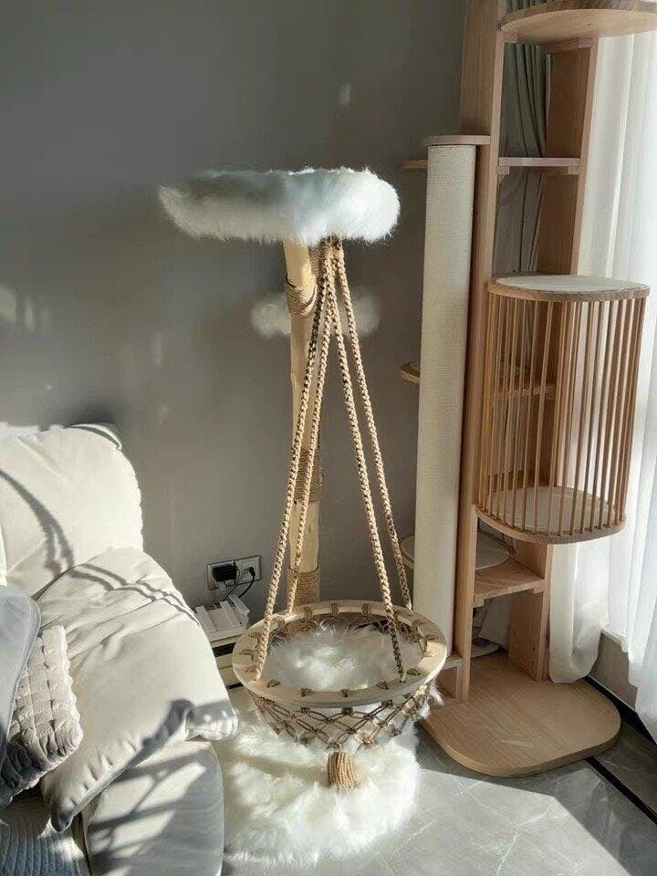 - This magnificent cat tree is made from superb quality solid wood, ensuring durability and stability for even the most adventurous cats. With its enchanting design inspired by a dreamy cradle, your kitty will feel like they're floating on clouds as they explore their new favorite hangout spot.