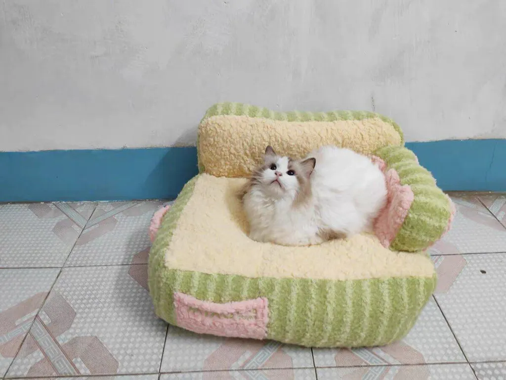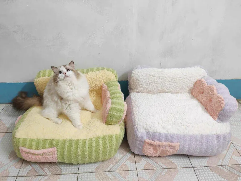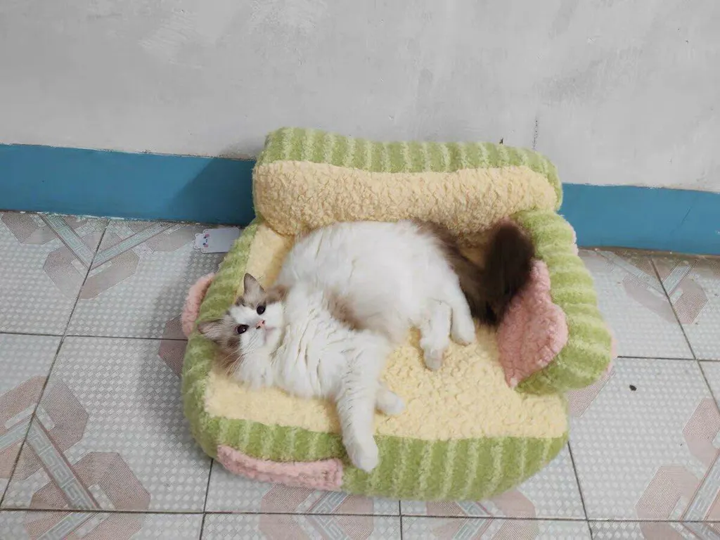 The removable covers make cleaning effortless. While both machine washing and hand washing are options, hand washing is recommended to preserve its softness. Treat your cat to the Cake Sofa Cat Bed—order now for cozy, two-tone style! - To find more cat beds click here