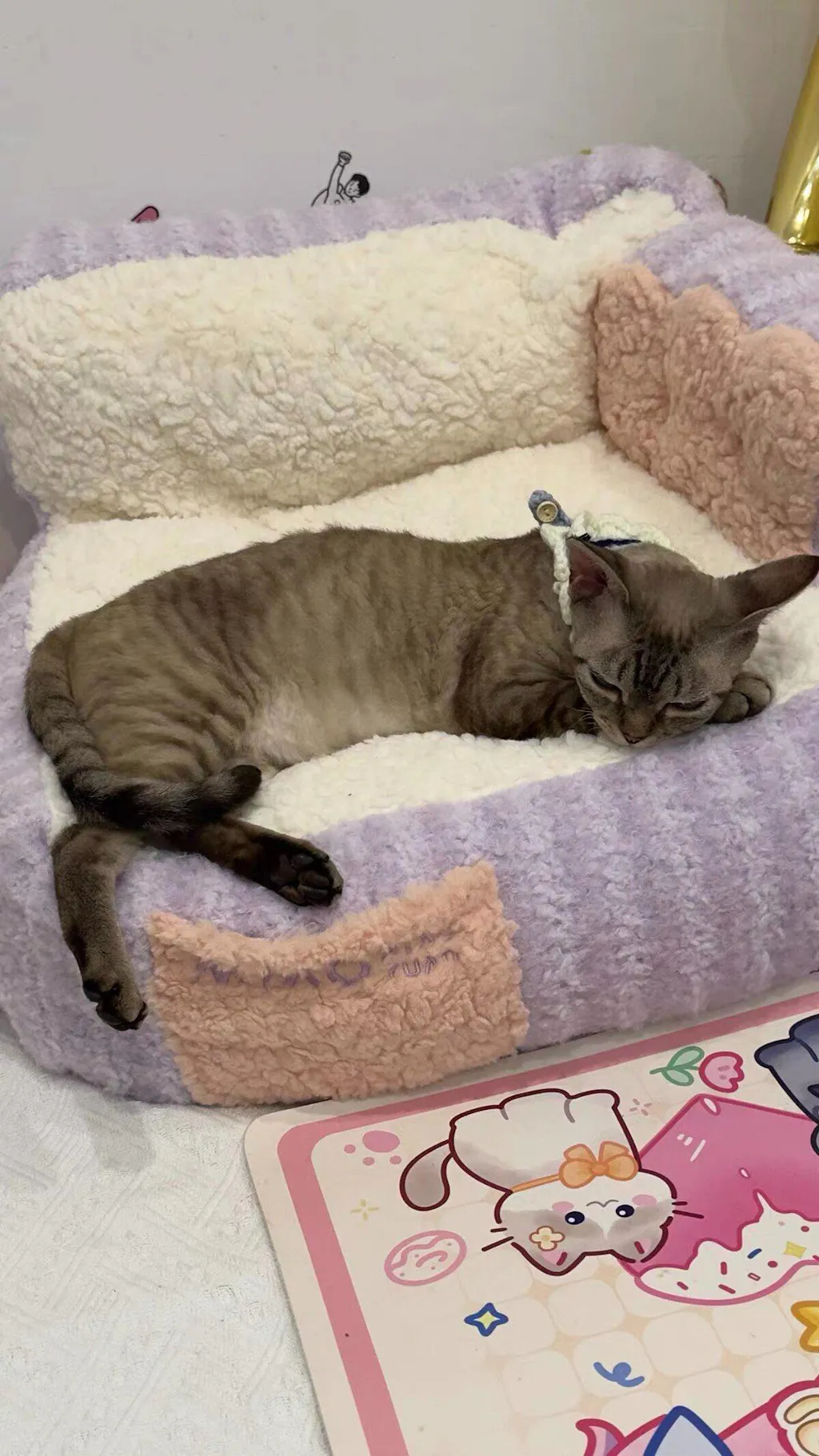 This charming cat bed features a unique cake sofa design in two delightful colors: Taro Cream and Peach Avocado. With dimensions of 50×45×37cm, it’s perfect for cats weighing up to 20 pounds. -
