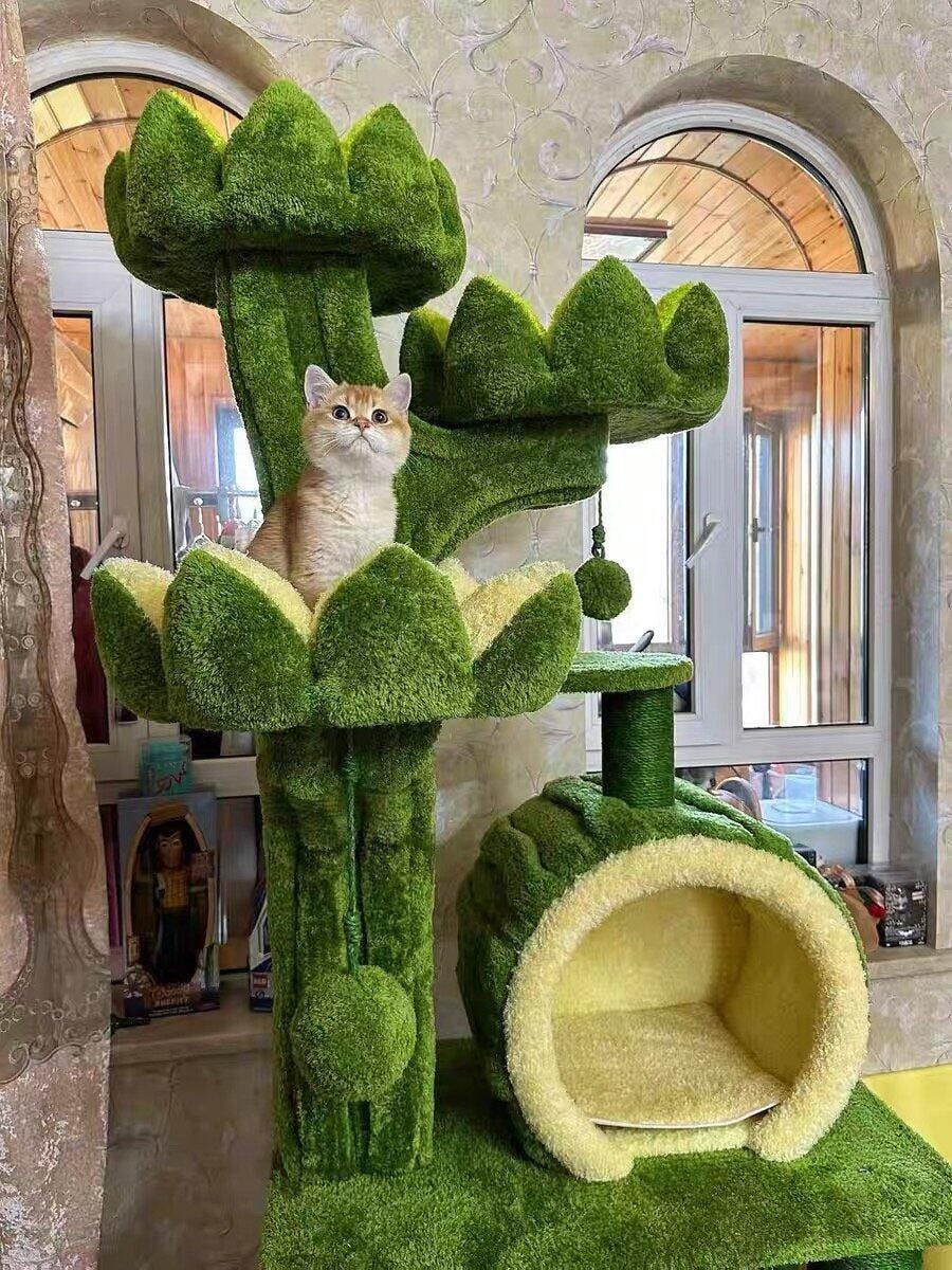 - Nature-Inspired Design: The Verdant Wilderness Cat Tree Tower brings a touch of the outdoors inside with lush greenery, creating a unique, natural playground for your feline friends. This eye-catching, tall cat tree adds charm to any room.